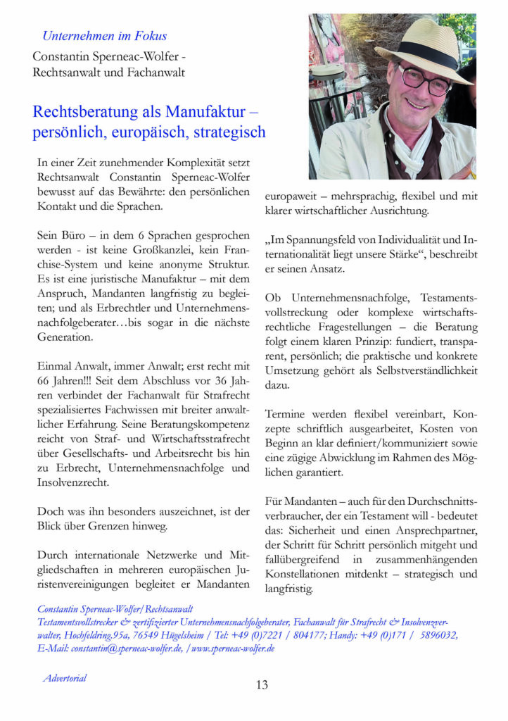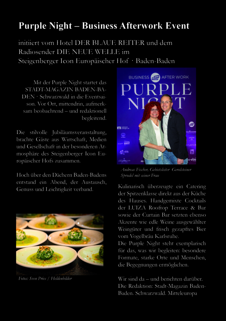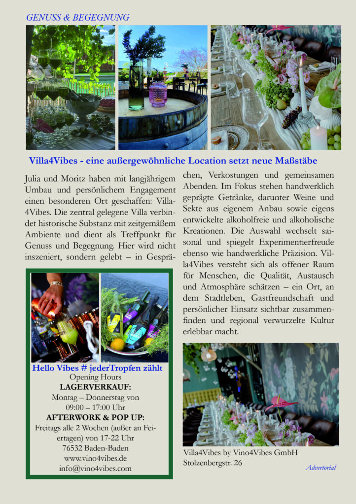 In einfacher und journalistisch profilierter Weise wird Ihnen Inspiration für Ihren Alltag gegeben. Ich schreibe über das, was mir begegnet und mich interessiert: Das ist die Frage nach dem guten Leben, das sind Reisen und unsere Leidenschaft für gutes Essen, Rezepte und Wein. Aber auch der Blick auf Nachhaltigkeit, Gesundheit und Natur spielen bei mir eine wesentliche Rolle. Lesen und informieren Sie sich im Baden-Baden Magazin