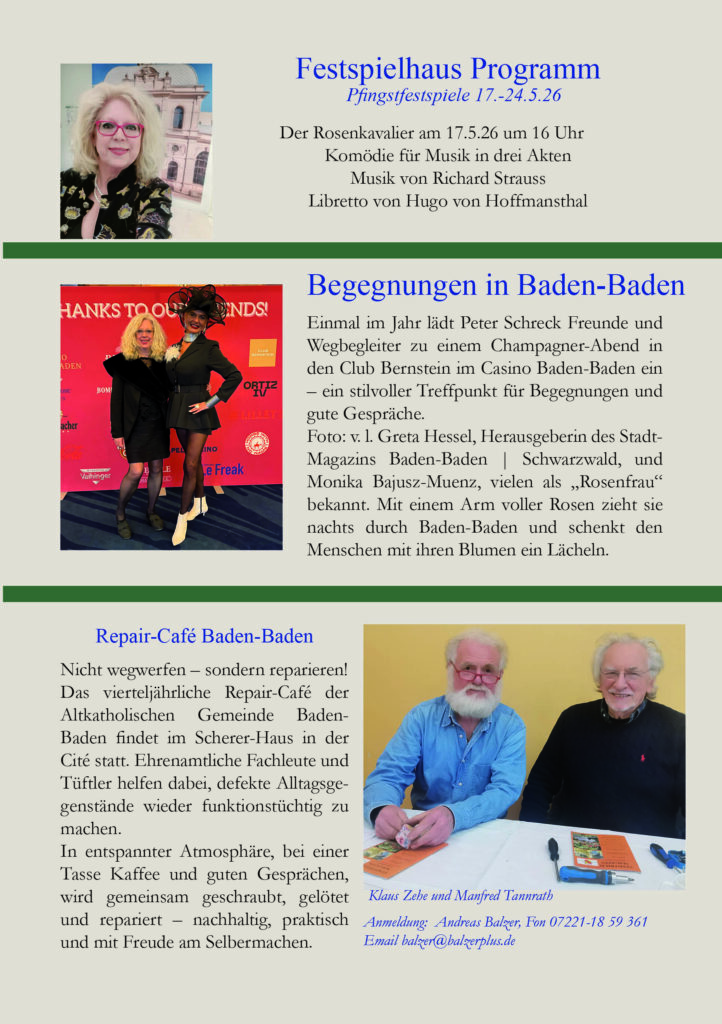 Willkommen auf dem Baden-Baden-Portal. Hier finden Sie Geschichten, Gesichter und Geheimtipps unserer Stadt – von Kultur über Genuss bis zu inspirierenden Persönlichkeiten.