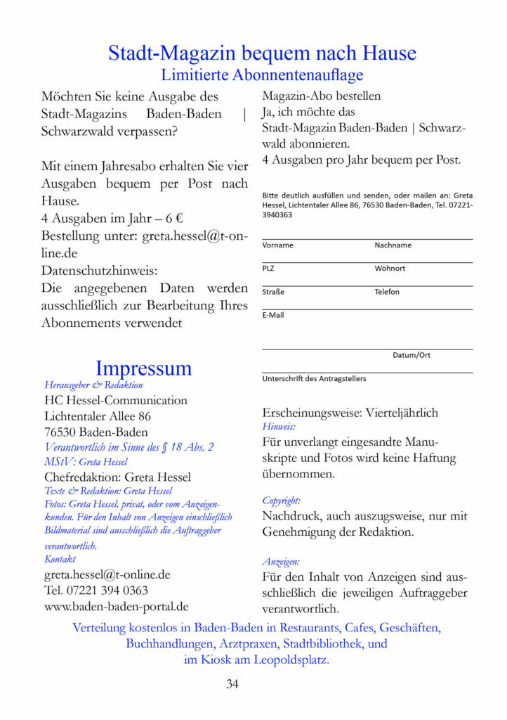 Die neue Frühjahrsausgabe des STADT-MAGAZIN BADEN-BADEN: