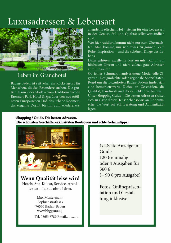 Wie können Sie sich in unserem Magazin präsentieren? Werbung im Baden-Baden Magazin